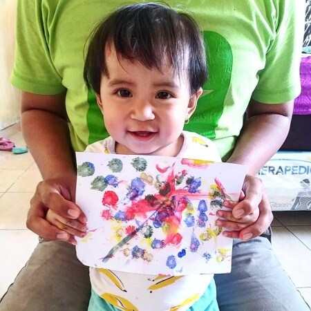 Gambar abstrak dari balita anak kami bernama Alexandria Da Lova menceritakan tentang kebebasan menuangkan warna yang menjadi wakil dari hewan kesukaan dan sahabat karibnya. Mereka berkumpul menjadi satu, bermain sekaligus belajar dalam ekspresi bentuk dan warna coretan sesuka hatinya.