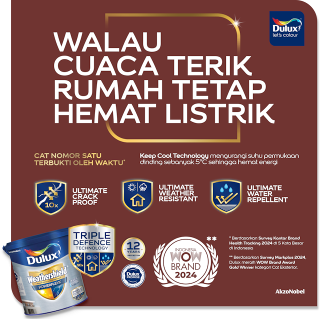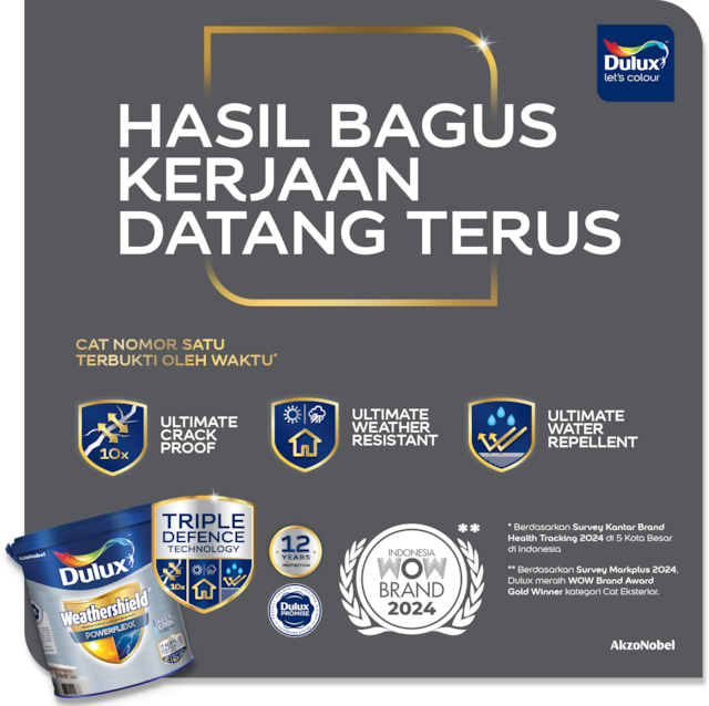 **Berdasarkan Survey Markplus 2024, Dulux meraih WOW Brand Award Gold Winner kategori Cat Eksterior