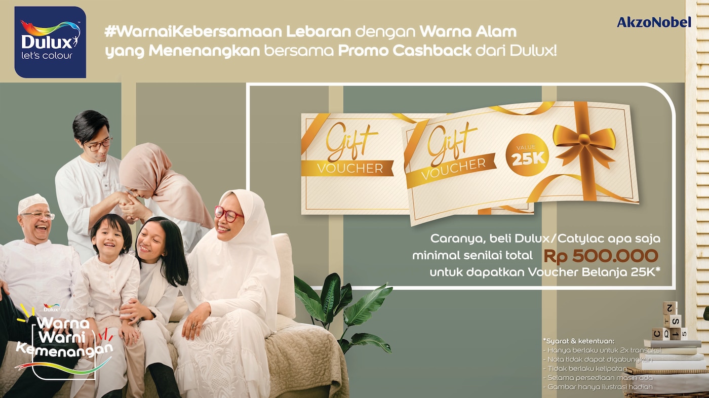 Dapatkan juga promo cashback #WarnaiKebersamaan dengan Pembelian Produk Dulux atau Catylac